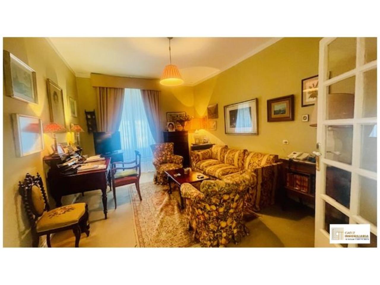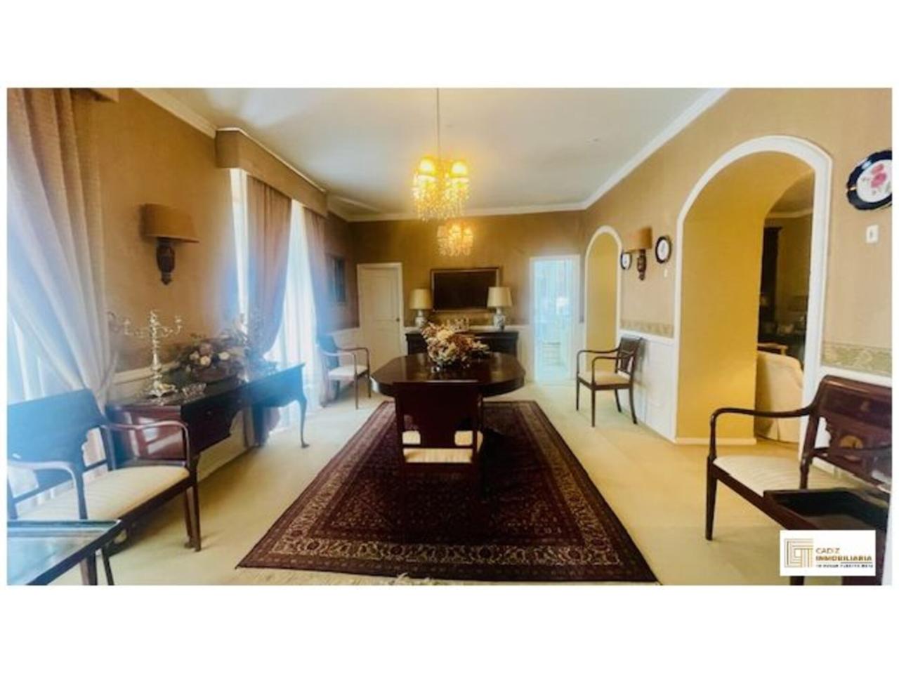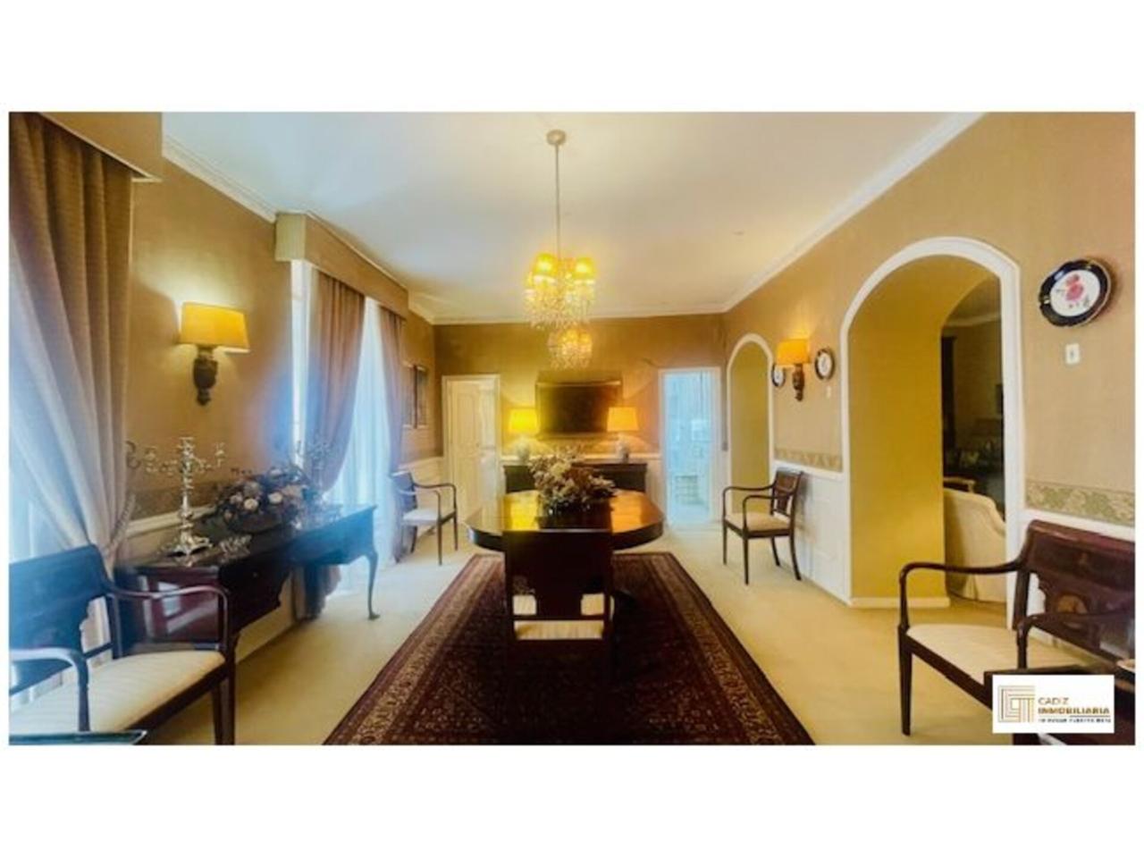 Cádiz Inmobiliaria les presenta esta espectacular vivienda a escasos metros de la Plaza de España y de la Alameda. Se trata de un piso en 1ª planta con una superficie de 243 m² útiles. Con 9 habitaciones, 3 baños completos, cocina independiente con despensa, salón independiente muy amplio con chimenea. Conserva toda la esencia de las casas señoriales de Cádiz, con grandes salones y ocho balcones a la calle. Suelo de parquet y moqueta. Armarios empotrados. Carpinteria exterior de PVC y carpintería interior de madera lacada en blanco. Muy bien conservado si bien permite realizar múltiples reformas dadas sus características y amplitud. Con orientación sur que proporciona una gran luminosidad.
