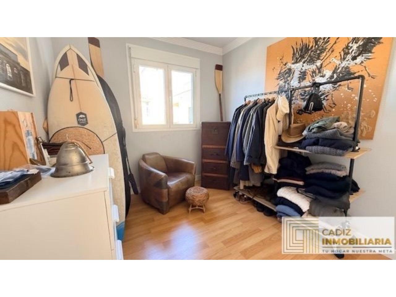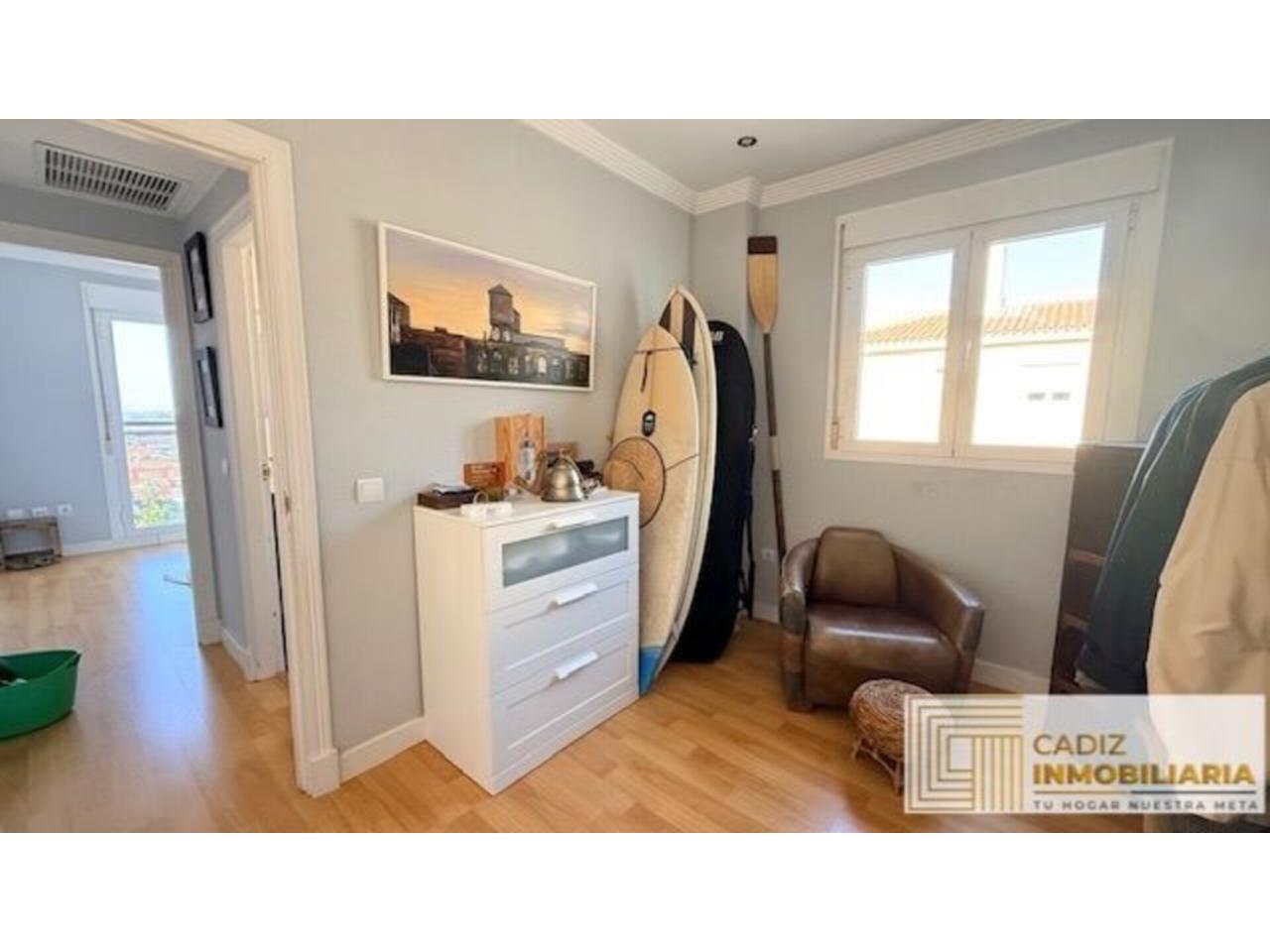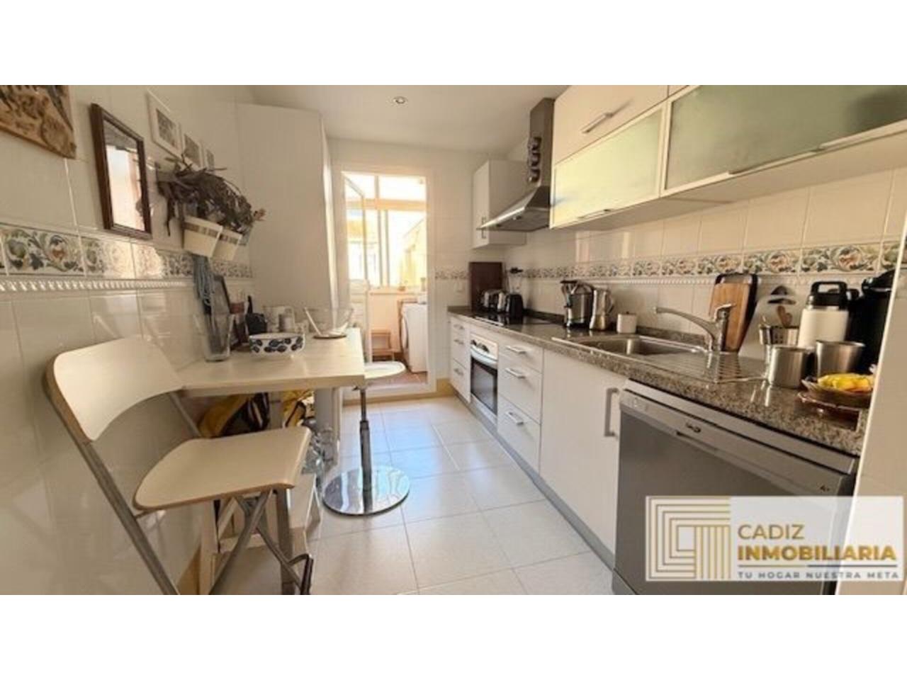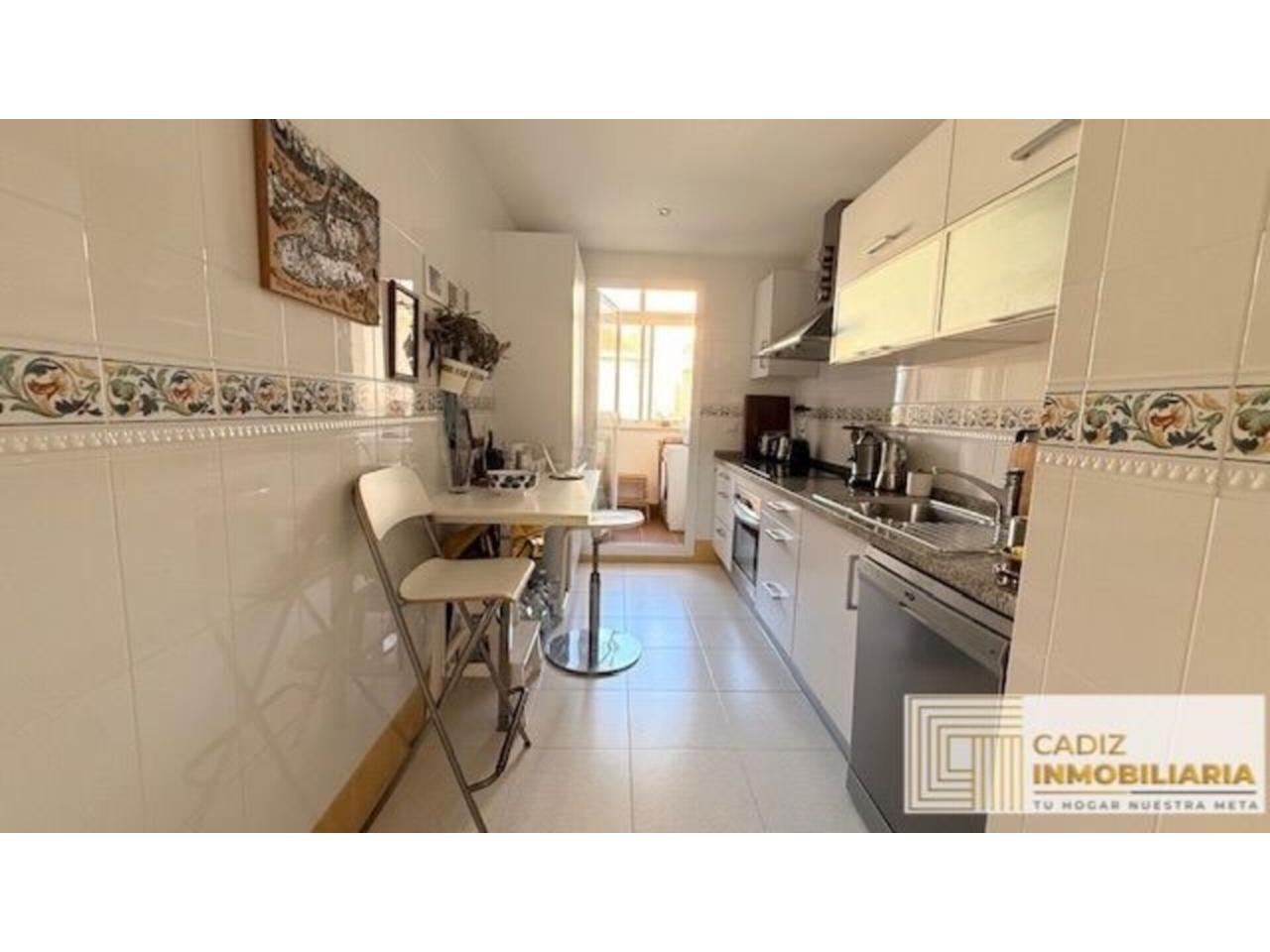 Toda exterior, con orientación sur-oeste. Desde un pequeño hall de entrada se accede al salón con terraza desde donde contemplar la Bahía de Cádiz . La cocina, completamente equipada y con electrodomésticos, cuenta además con una zona de lavadero muy práctica. Los dos dormitorios son también exteriores y con armarios empotrados en cada uno de ellos. Por último, el cuarto de baño con placa de ducha y ventana también al exterior.