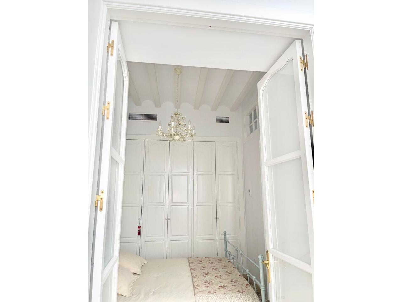 Todo en ella es elegancia: desde el portón de madera que da acceso al interior hasta la preciosa galería acristalada de madera, y el suelo hidráulico en todas las estancias; los cierros con sus contraventanas de madera, techos de cuatro metros de altura con vigas vista pintadas en blanco.